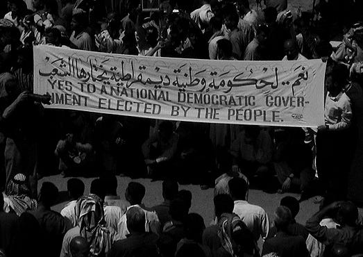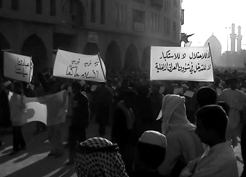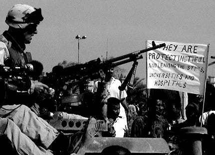 There were frequent angry anti-occupation demonstrations in Baghdad in April 2003, by people furious that the heavily armed Americans appeared to be doing nothing to stop the looting and the destruction of public buildings & institutions that was taking place in the capital.