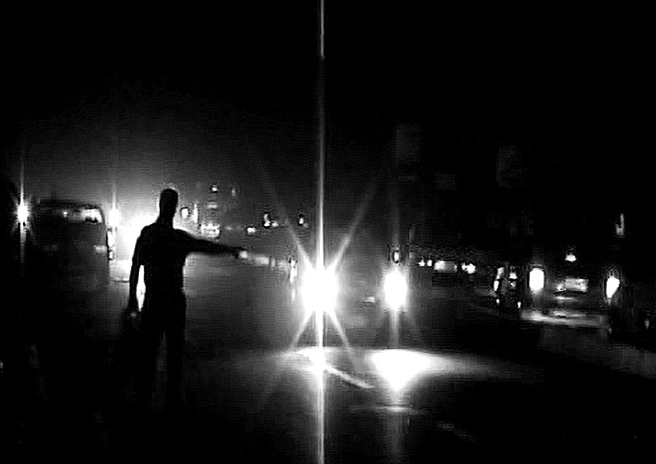 A moonless night in the desert. A dark road with no white lines. Little traffic.