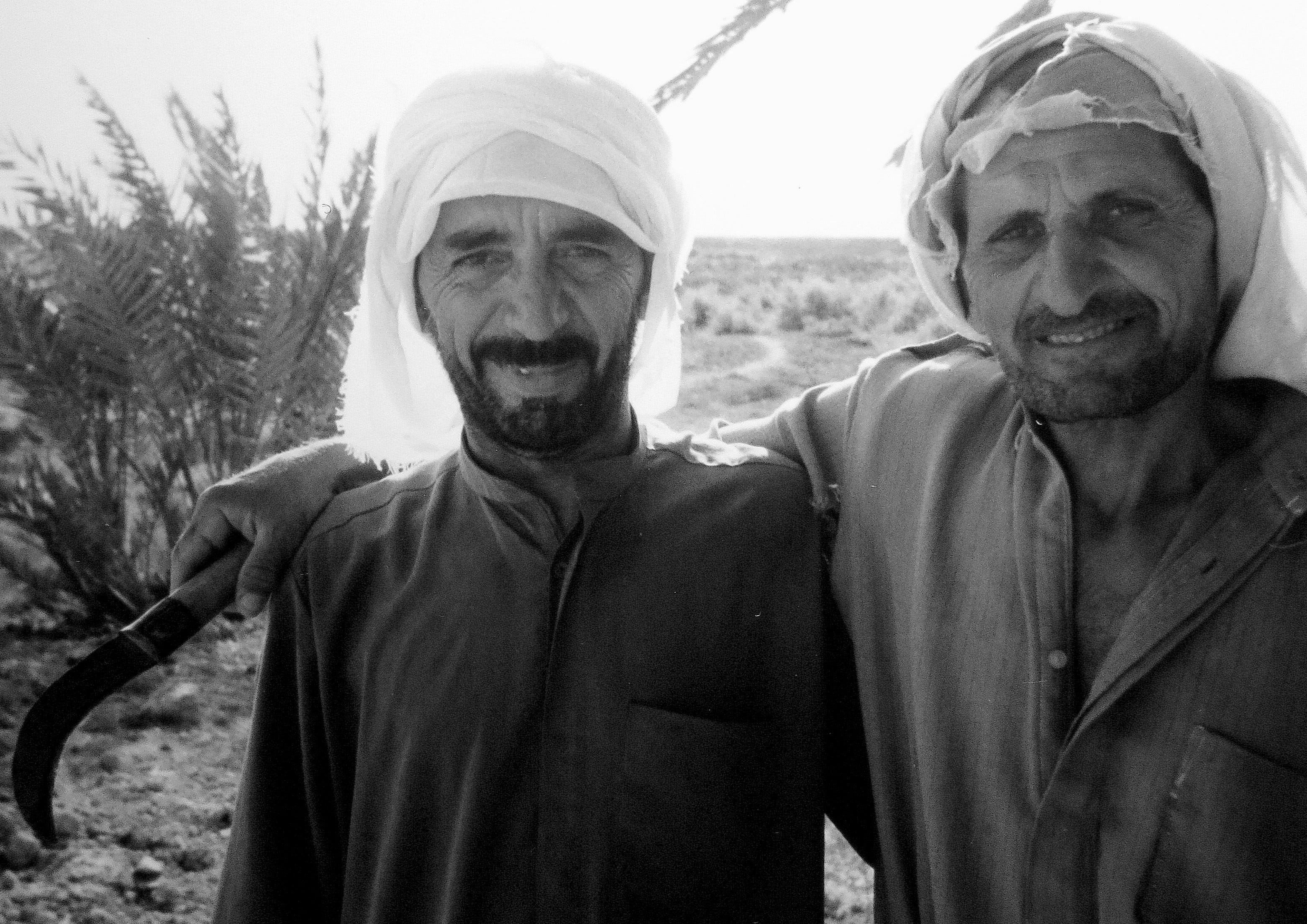 Hamid's neighbour Matrud Aziz Abdullah invited us all to tea. He spread three carpets on the ground. The two farmers and their children and Khaled and my armed escorts - about twenty of us - sat in the shade of Matrud's date palm and drank sweet tea and ate dry biscuits.