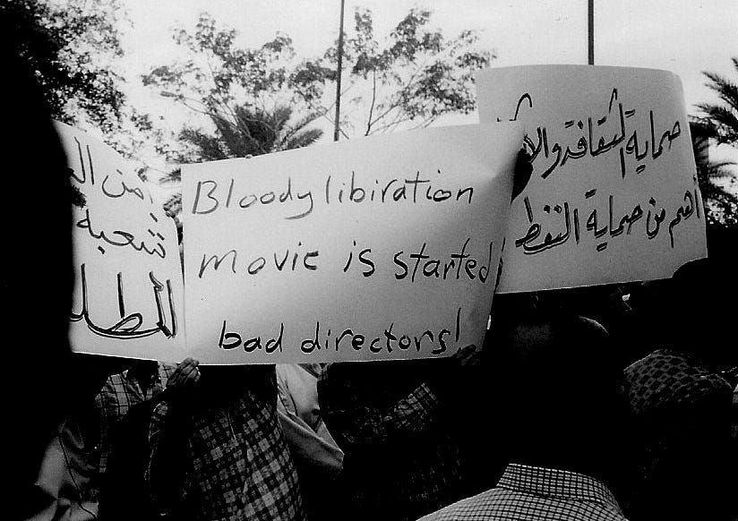 "What use are promises of democracy if the very start of the process is an interim political council which is unelected? After suffering for thirty-five years under the regime of Saddam Hussein, we want to express our own opinions and feelings."